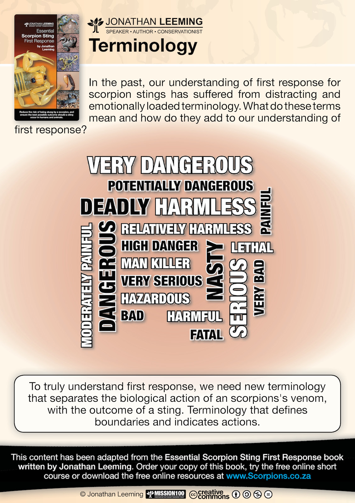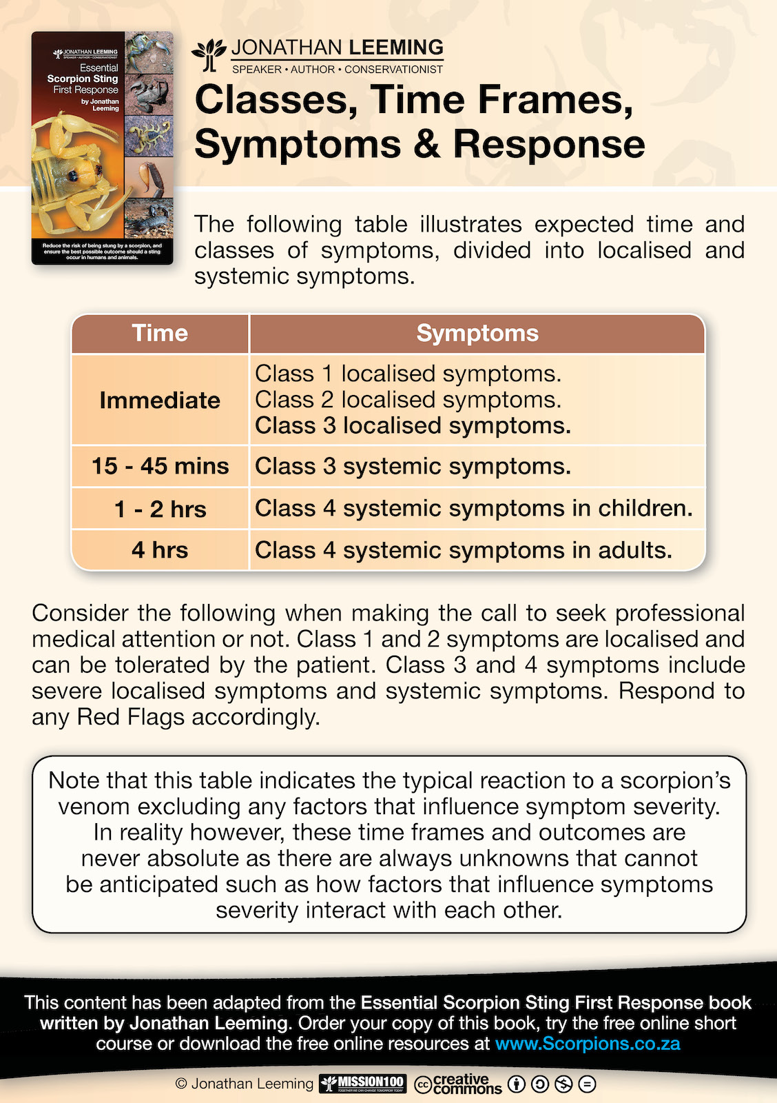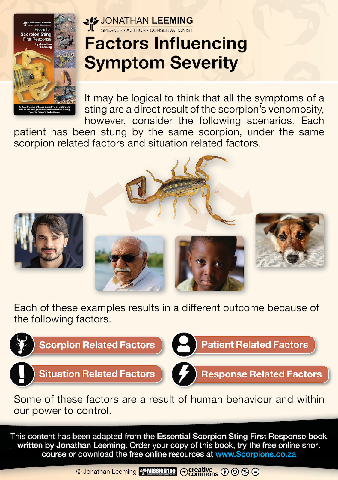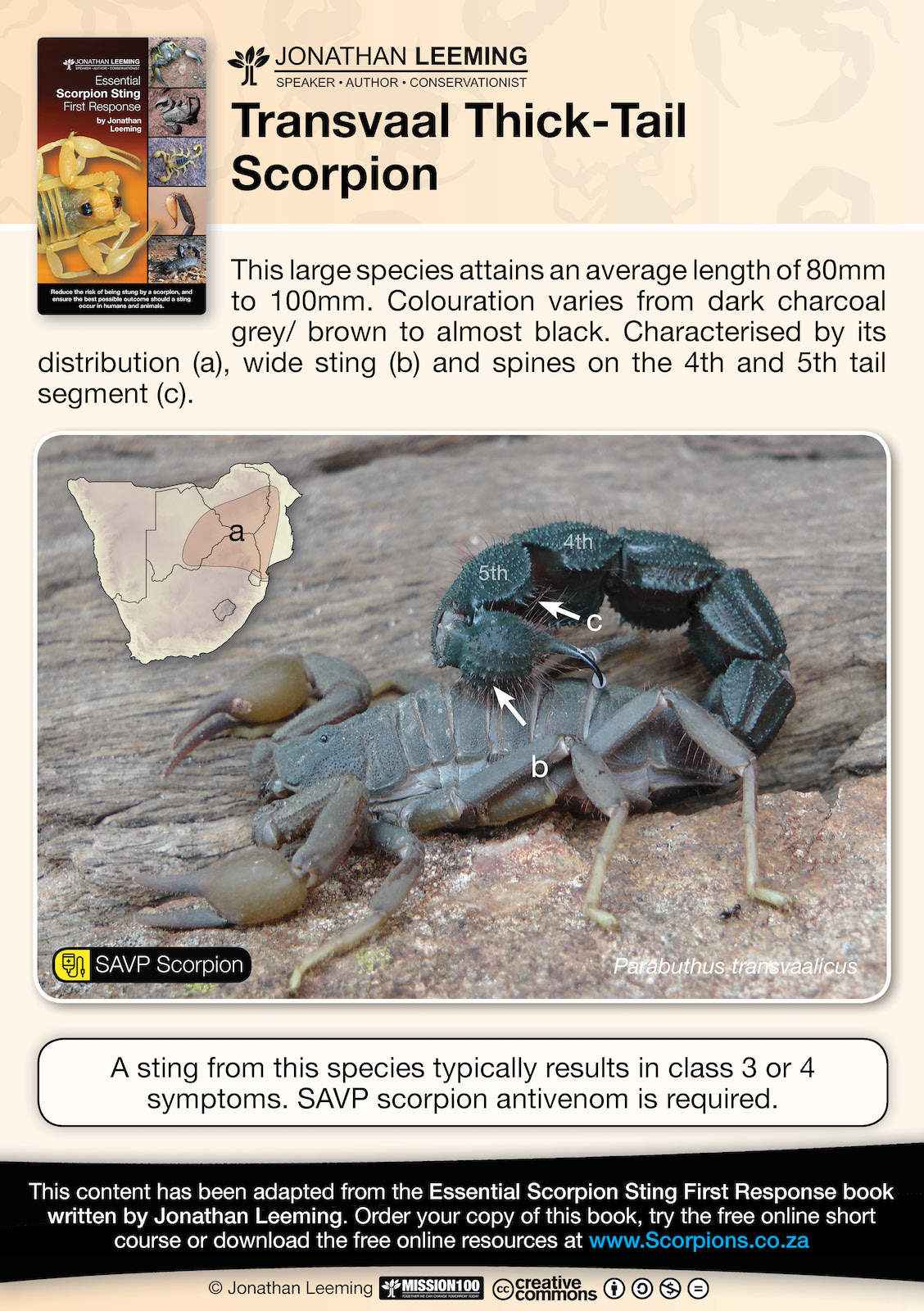 Thank you for joining my cause to reduce the burden of scorpion stings in southern Africa at all levels of society in southern Africa. The importance of the first responder in this chain of events cannot be overstated. As a first responder you play an important role as the first person on the scene, and as the person who the patient looks to for help and as the person who has a profound influence on what happens after a scorpion sting event. The following resources offer support in your leadership role within your organisation and community. Feel free and spread these resources on to your community and social groups.