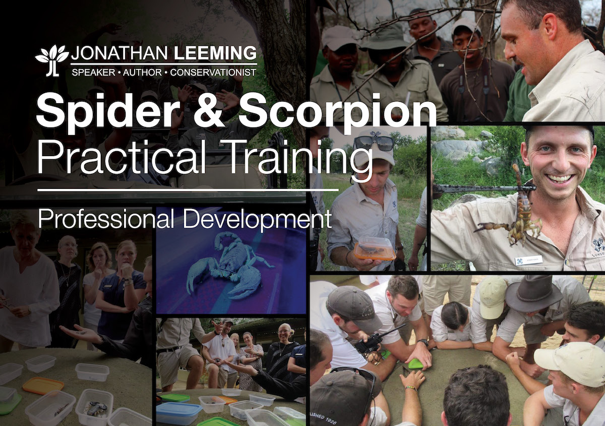 The Arachnid Course offers practical activities in the area of operation. It focuses upon the 4 major groups of arachnids in a natural setting. Suitable for multi-day training such as lodge training, field guide training and environmental training organisations. Fieldwork activities focus upon the natural history of these animals and include pitfall traps, identification workshop, first response, medical importance and much more.